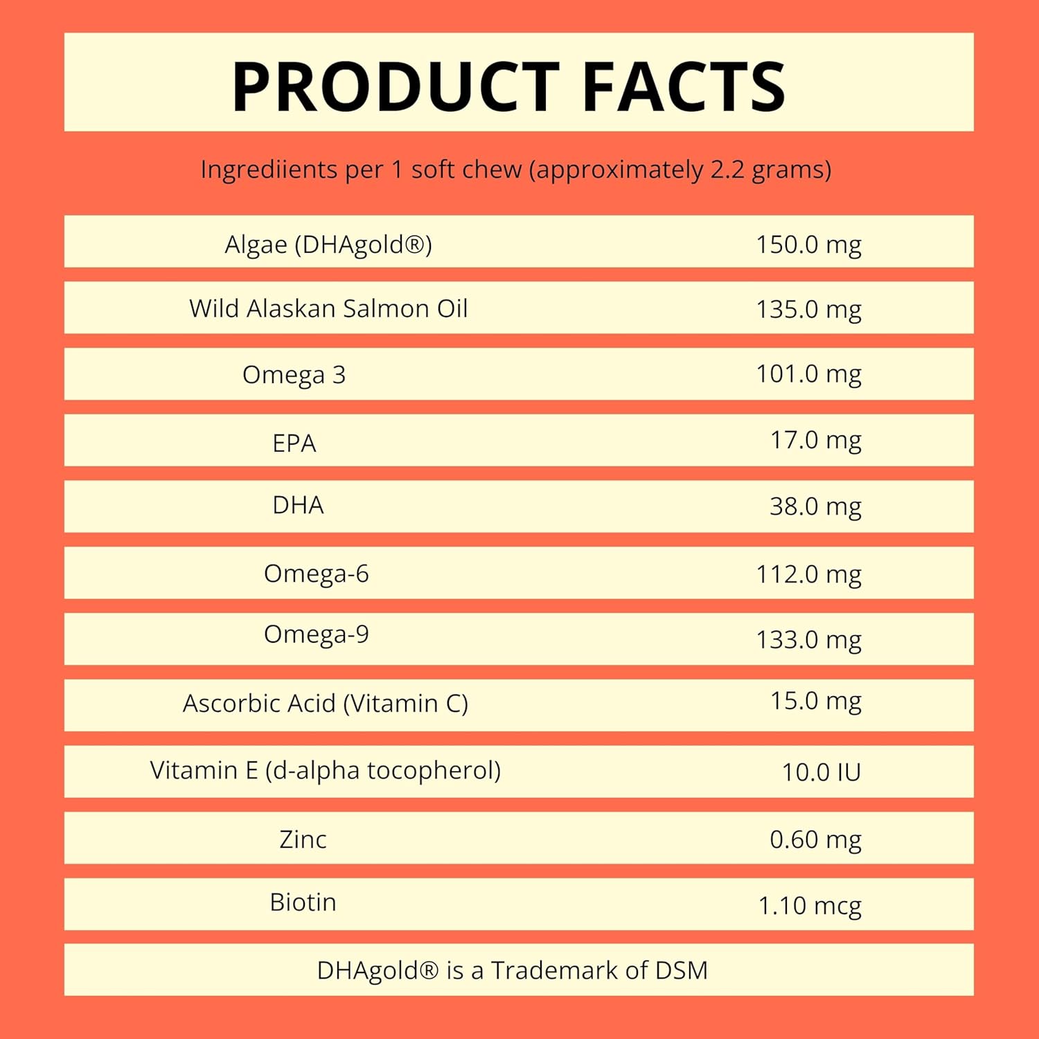 Ingredients per 1 soft chew (approximately 2.2 grams)